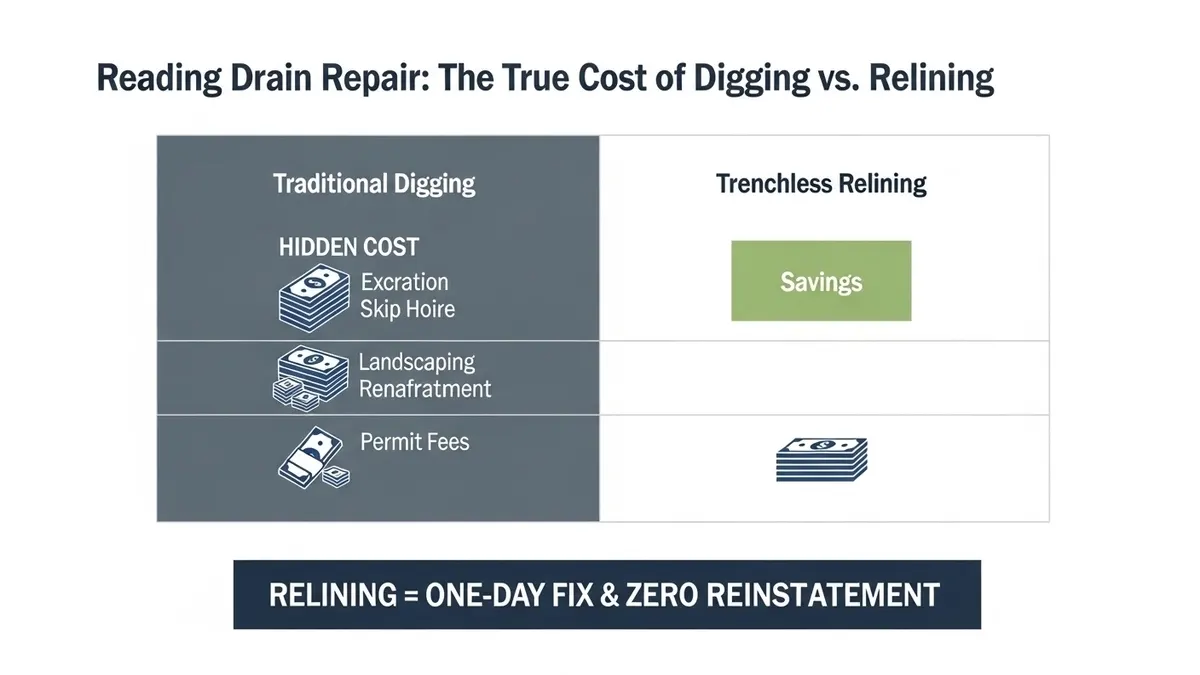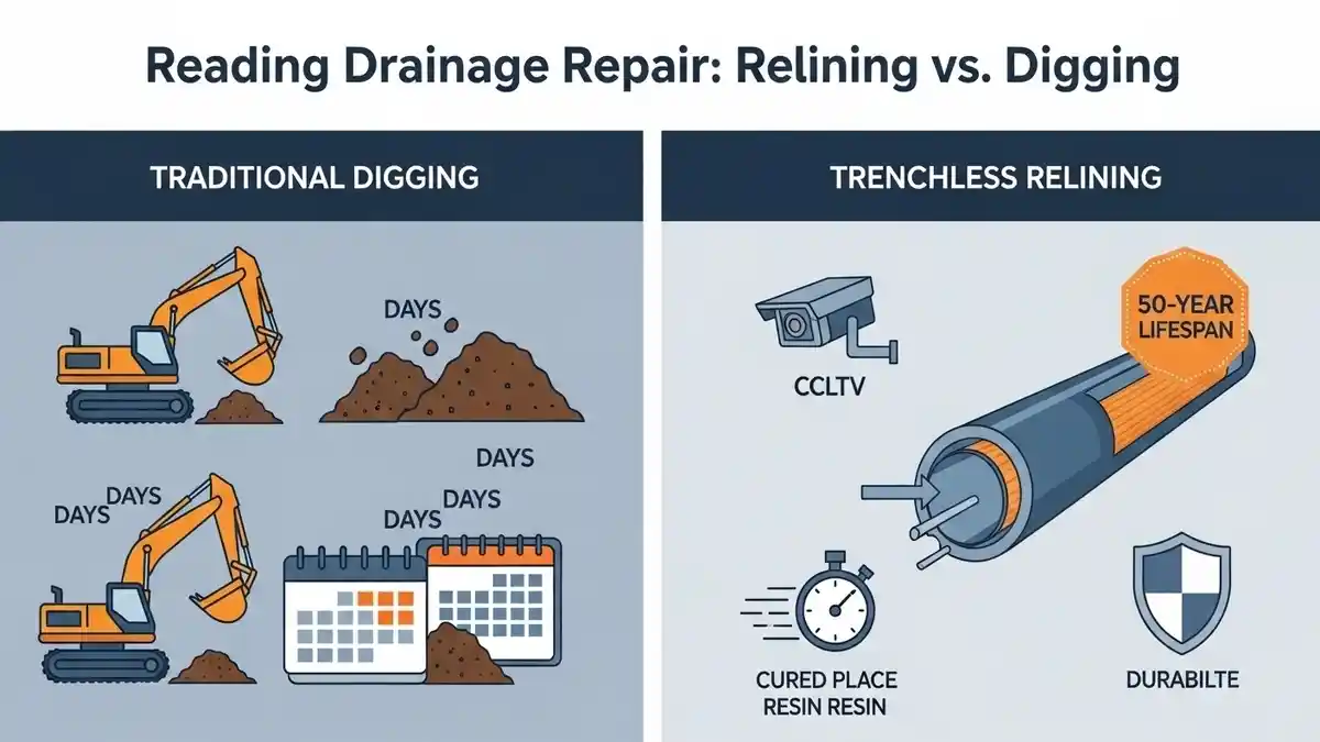 Avoid costly, messy excavations. Compare Kennington Drain Relining vs Digging to save your home, time, and money with our expert, minimally invasive, and durable no-dig repair solutions for local drains.